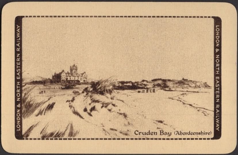 Back in the days when the LNER owned the Cruden Bay Hotel, Cruden Bay apeared on sets of playing cards in the Beautiful Britain series. I remember back in the 1960s /1970s my parents Charlotte and Denis were in the Cruden Bay Whist Club. They stored the suitcase full of playing cards between matches. There were a number of these set amongst the packs. I wonder what happened to them after my parents time in the Whist Club?