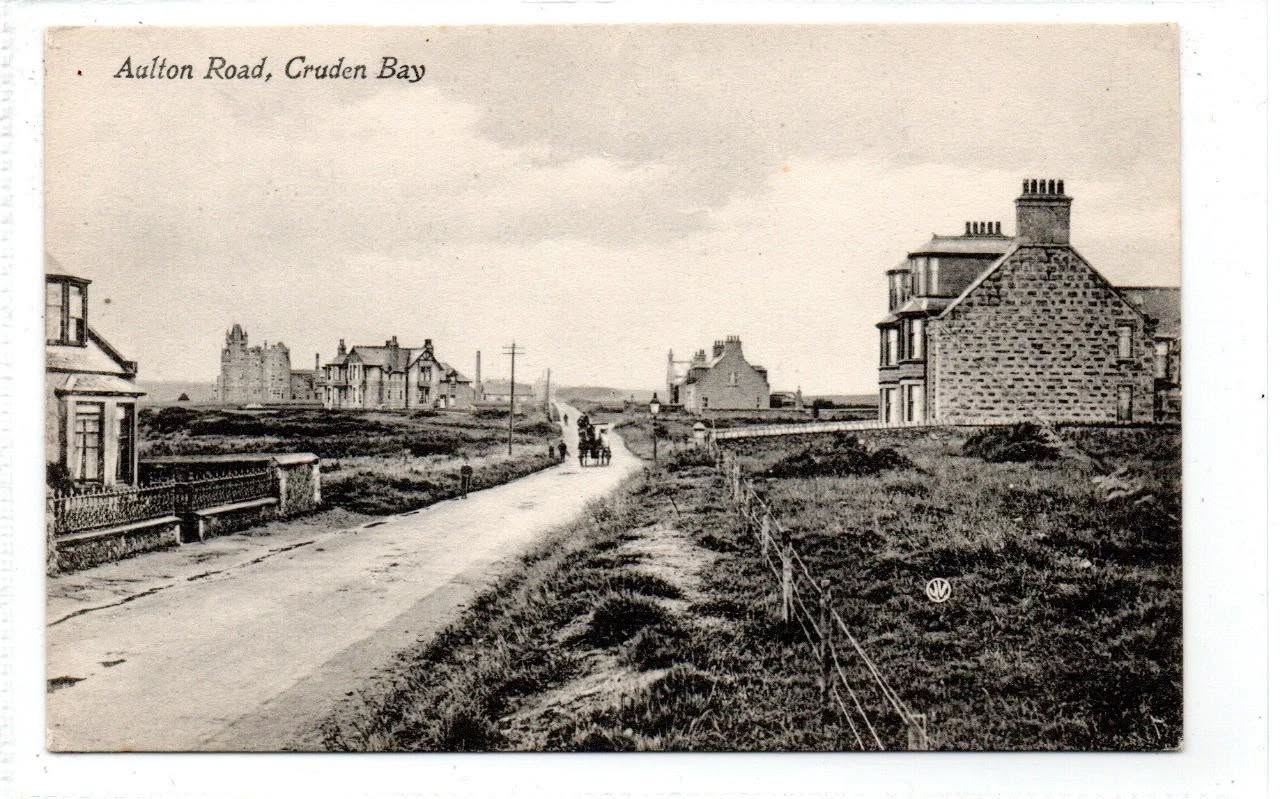 This postcard shows the same stretch of Aulton Road, Cruden Bay as yesterdays photo but from the opposite direction. The photo is from the early 1900s, St Olaf is on the left with the GNSR Hotel and Laundry behind.
