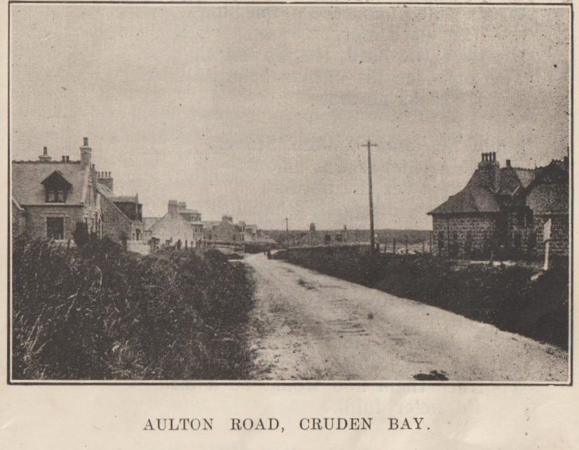 Thanks to Sylvia Munro for the loan of James Ogston’s 1911 Poetry Book “Lilts Frae Cruden Bay”. The book has poems of local interest as well as poems from further afield, such as Rothiemay, Huntly and Hill of Fare, Banchory. The book has a number of Cruden Bay photo illustrations, below you will see Aulton Road when the Police Station was the last house on the left in the picture. St Olaf when it was the GNSR Hotel managers house is on the right.