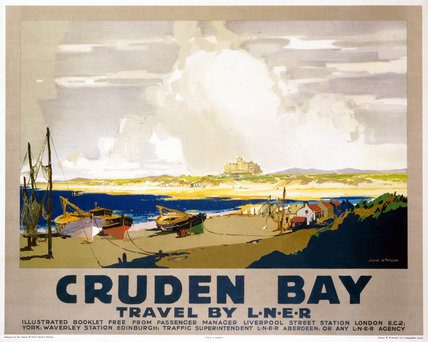 A delightful poster of Cruden Bay by Frank H. Mason. This was one of the exhibits at the L.N.E.R.’s recent exhibition of Railway Poster Art at the Burlington Galleries, Burlington Gardens, Piccadilly. This was the first exhibition of its kind.